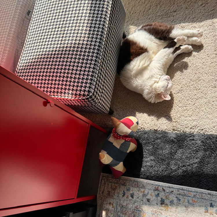 Domi is our living stress ball. We adopted him from a parking lot in Melawati a few months ago and he has been a part of our team ever since. You will find Domi keeping us company at our work stations or hot desks, jump onto the table to join our discussions and has become the star of this year’s festive and celebratory greetings.
